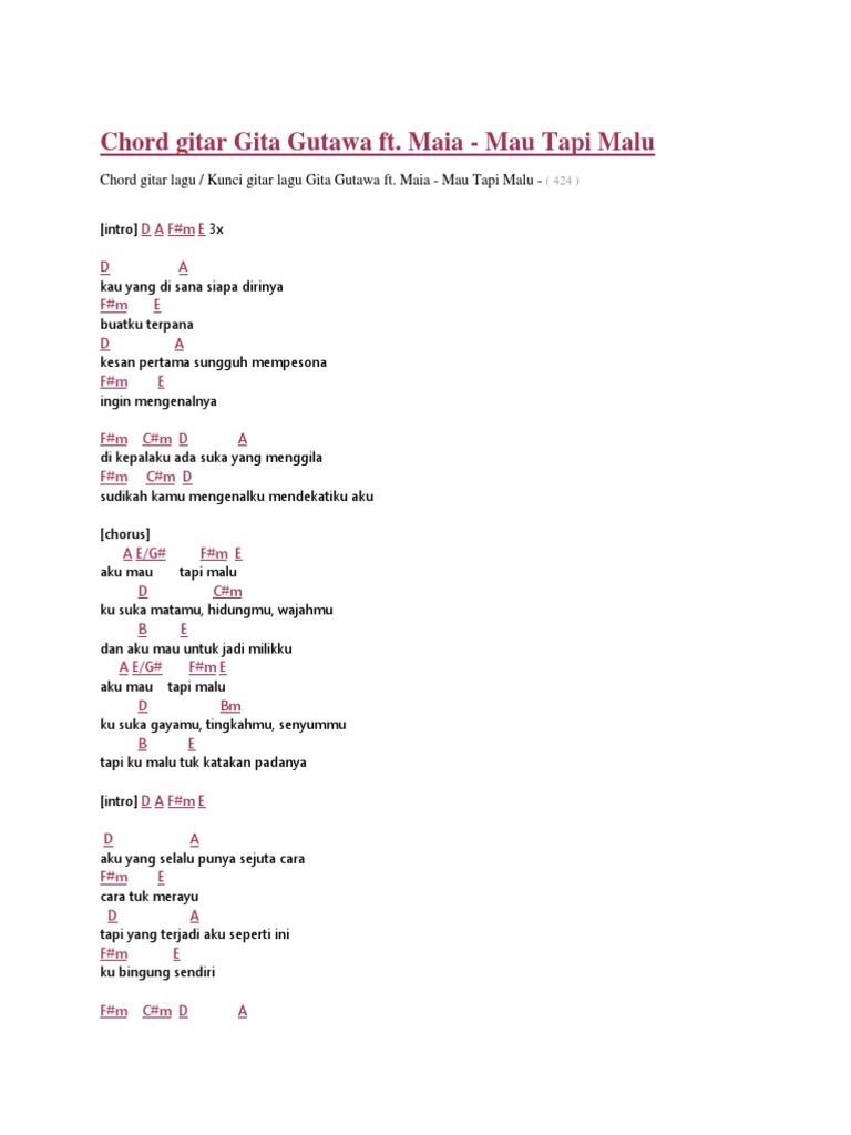 Chord Gitar Gita Gutawa Ft Maia Mau Tapi Malu