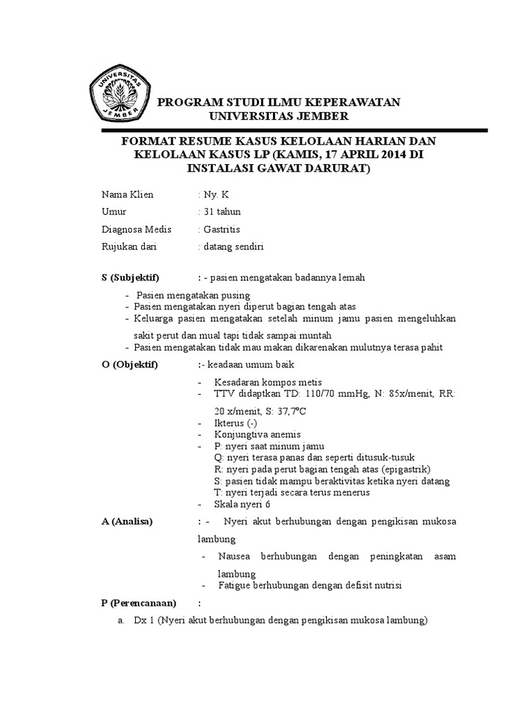 Saat pengkajian klien masih merasakan saaat aktivitas tiba seluruh badannya terasa lemas terutamaa dibagian kaki dan tanganklien istirahat bila capek dan aktivitas dibantu oleh keluargahal ini disebabkan karena intake cairan yang menurun. Inilah contoh soal kasus penyakit gastritis dan jawabannya dan informasi lain yang masih ada hubungannya dengan topik contoh soal kasus penyakit gastritis dan jawabannya yang Anda cari. Pasien demam 387C dan ibunya sudah memberikan PCT untuk antidemam.