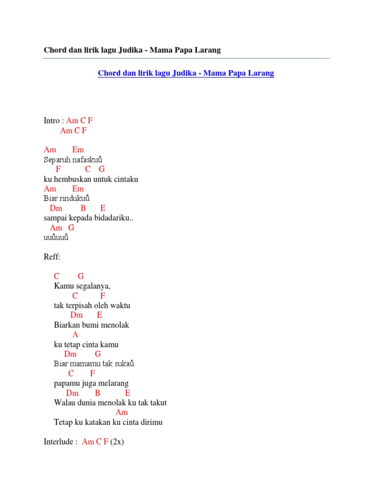 KUNCI GITAR LAGU O DUMA - JUDIKA SIHOTANG TERLENGKAP DAN TEPAT Berbagi Chord Kunci Gitar dan Lirik Lagu Gratis untuk lagu Indonesia Daerah dan Mancanegara. Judika - o duma by Leonardo nbc_coy Rock music from Medan UA on ReverbNation. Chord Judika - Mama.
