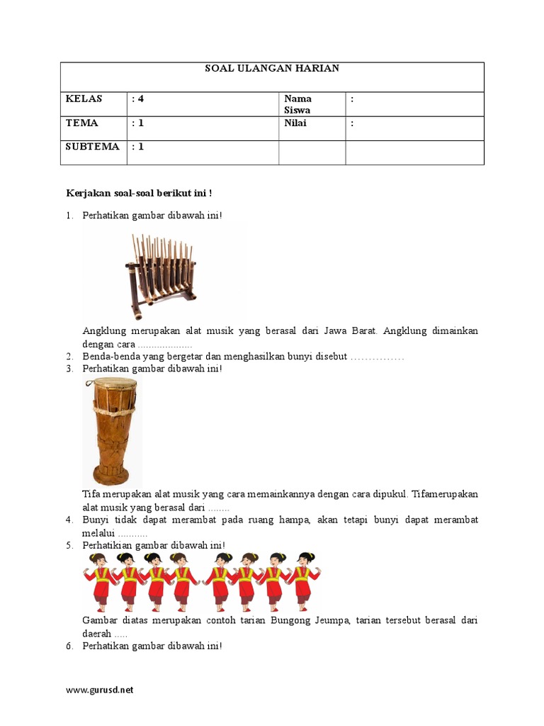 Kunci Jawaban Kelas 4 Sd Tematik 1 Halaman 10 11 Nama Alat Musik Tradisional Indonesia Tribun Sumsel